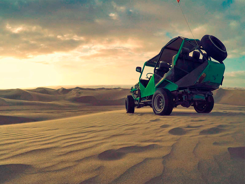 Pasear en carros de arena (tubulares) y deslizarse por las inmensas dunas sobre una tabla son las actividades que más disfrutan los viajeros cuando visitan el oasis de la Huacachina en Ica.